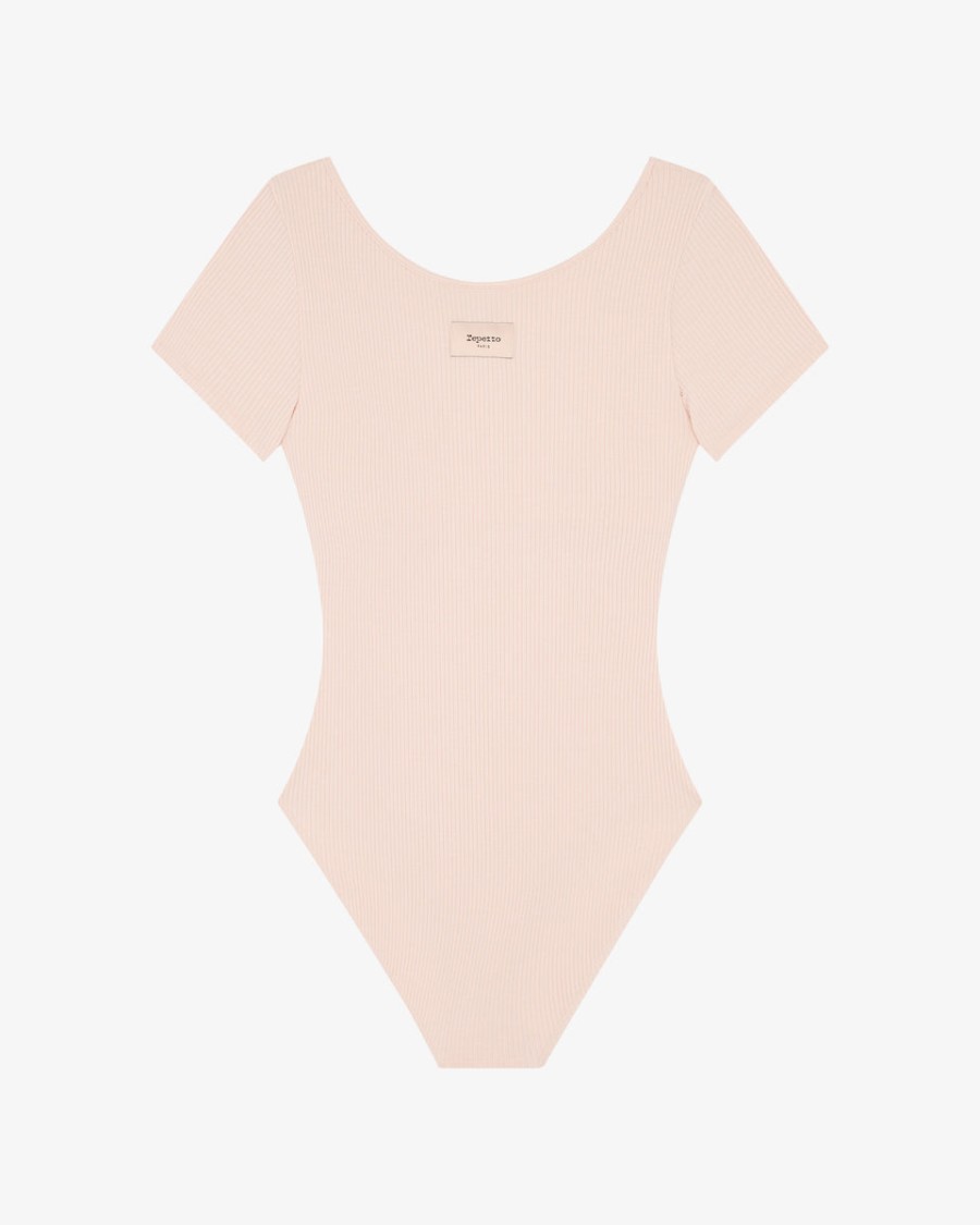 Designed in a soft, stretchy ribbed fabric, this elegant leotard is a modern interpretation of the dancer’s uniform. Its exceptional comfort makes it a must-have for yoga, Pilates, or dance practice.