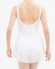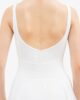 This tunic with thin straps has a round gathered neckline to highlight the top of the body. The fantasy detail in the back enhances its classic style. The cross-over chiffon frill gives a glimpse of the movements.