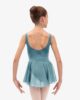 This tunic with thin straps has a round gathered neckline to highlight the top of the body. The fantasy detail in the back enhances its classic style. The cross-over chiffon frill gives a glimpse of the movements.