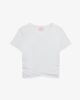 Details: Short sleeve stretch cotton top. Round neckline. Gathers on the sides. Repetto logo on bottom of garment.