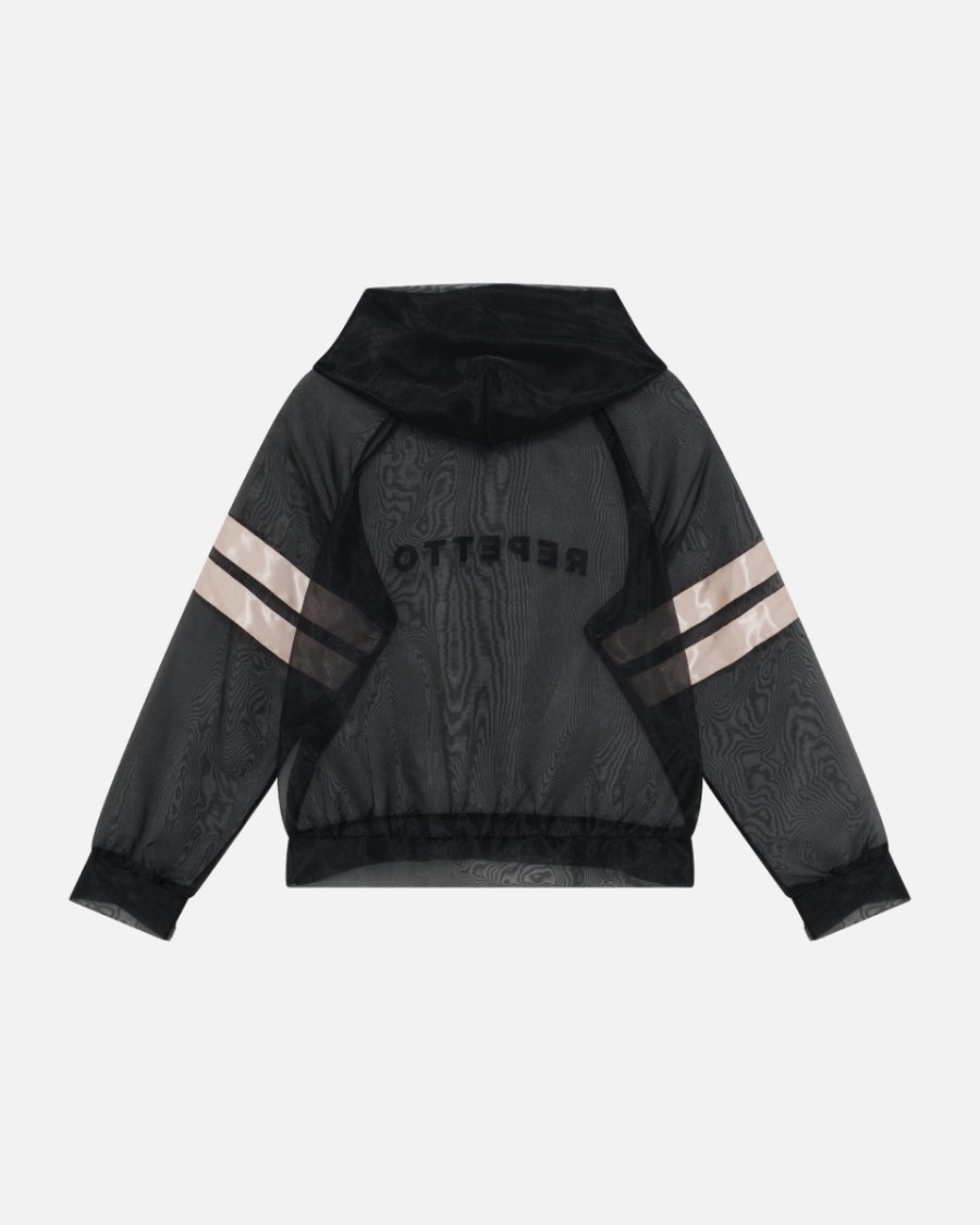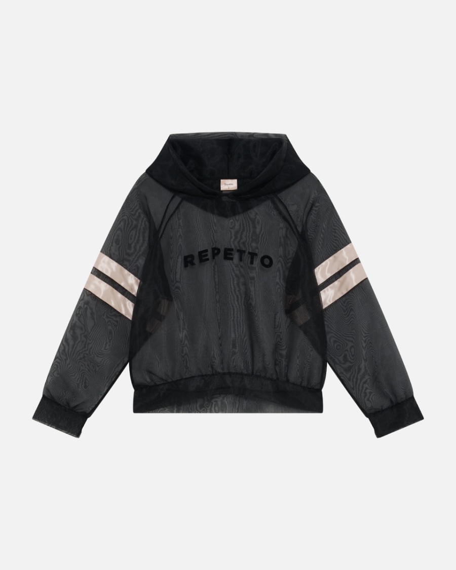 A modern, more urban reinterpretation of the iconic Repetto satin-striped sweatshirt, this sweatshirt in organza embraces the Repetto’s codes. Its oversized cut and transparency make it a fashion piece. Its soft fabric enhances the body and ensures a daring silhouette.