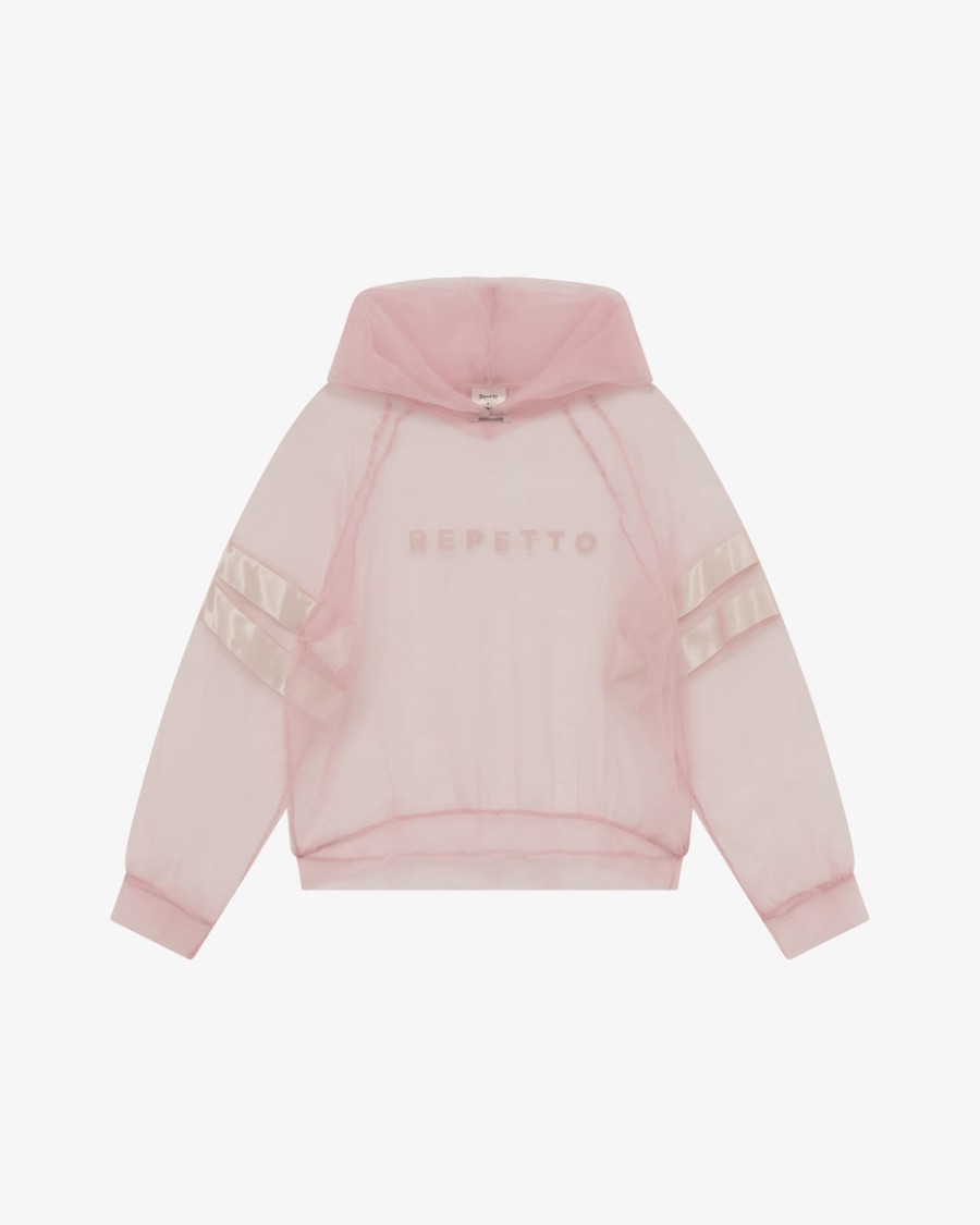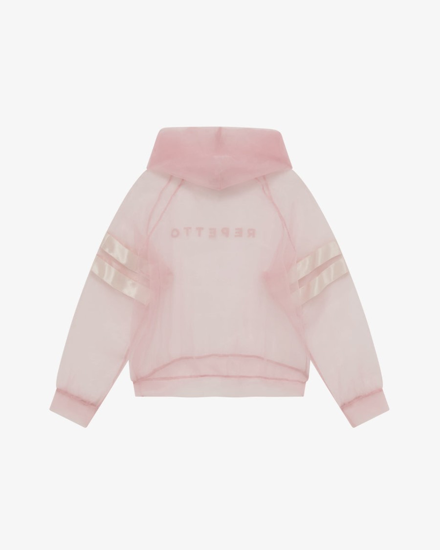A modern and more urban reinterpretation of the iconic Repetto satin-stripe sweatshirt, this sweatshirt made of Organza captures the House’s signature codes. Its oversized fit and bold transparency make it a fashion-forward piece. The soft fabric enhances the body and ensures a bold silhouette.