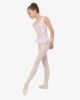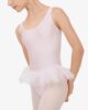 Pale pink tunic with tulle frill. It is a leotard with an integrated skirt. Large straps. Transparent transfer of the Repetto logo on the back. Shiny aspect. Charmante satin 80% polyamide 20% elastane – Tulle frill 100% polyamide. Pale Pink.