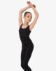 Black unitard with large straps for young dancer. Round neckline. Fancy back. Chest support. Transfer of the Repetto logo. Mat aspect.
